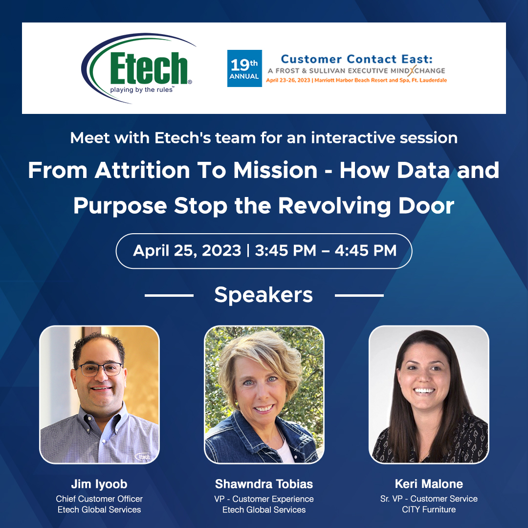 To learn more about Etech's next-gen contact center technologies and its participation in the 19th Annual Customer Contact East Frost & Sullivan Executive MindXchange, visit the website.