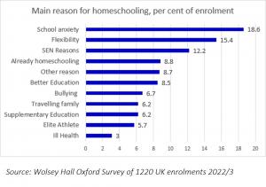 The ‘Main reason for homeschooling’ data relates to 1220 UK enrolments with Wolsey Hall Oxford over the period Feb 22 – Feb 23 .