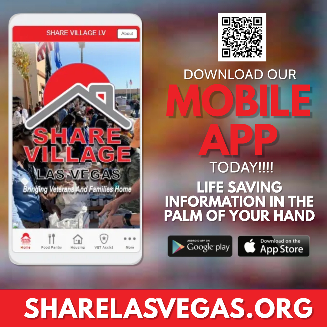 Share Village Las Vegas is a nonprofit organization dedicated to the elimination of homelessness poverty and hunger in the United States. Share Village Las Vegas houses over 500 previously homeless veterans and families each night with both transitional and permanent affordable rental housing, provides comprehensive market fresh food, operates Share Village Las Vegas "Order Ahead" concierge touchless curbside food service, and distributes emergency food boxes, feminine hygiene supplies and dog and cat food supplies for our residents and the community which further enhances our collaborations to provide direct access to medical and mental health, addiction services, employment placement and job training. www.sharelasvegas,org Federal Tax ID #: 94-3209791