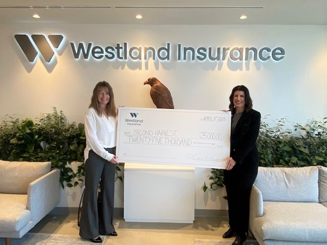 Surrey, BC/Territories of the Coast Salish (Kwantlen, Katzie, Semiahmoo, Tsawwassen First Nations), April 14, 2023 (GLOBE NEWSWIRE) -- Westland Insurance, one of Canada's largest independently owned brokerages, today announced a pledge of $25,000 to Second Harvest, Canada's largest food rescue organization. The formal presentation of the cheque took place on April 11, where Westland representatives presented the donation to Second Harvest's Head of BC Operations, Shelley Lycan.