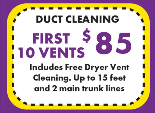They're Spring Specials include a 3-room carpet cleaning deal, a 5-room carpet cleaning deal, and an air duct cleaning deal on your first 10 vents.
