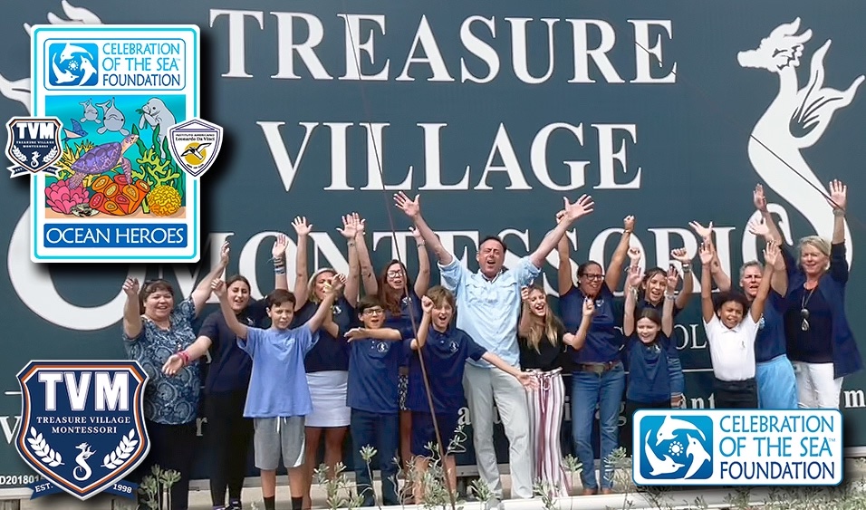 Celebration of the Sea Foundation founder, chairman and CEO Patxi Pastor is joined by students and staff at Treasure Village Montessori to announce the Ocean Heroes international interactive educational and conservation exchange program