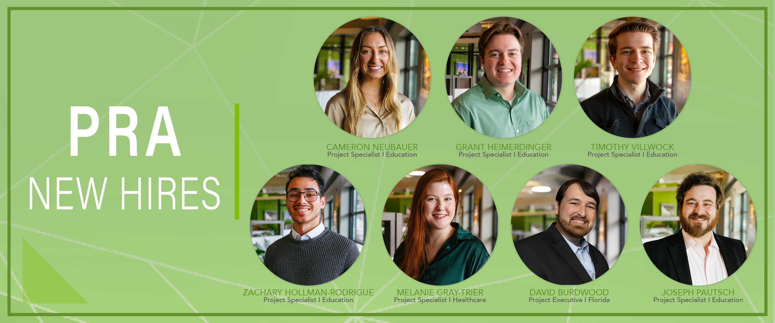 “We are excited to see the new ideas these young practitioners will bring to our clients, and how they will help to shape our PRA culture. Their experiences, education, and positive attitudes will have a lasting impact on the work we do, and we look forward to a bright future with them at OnePRA” Scott Kramer, Managing Partner.