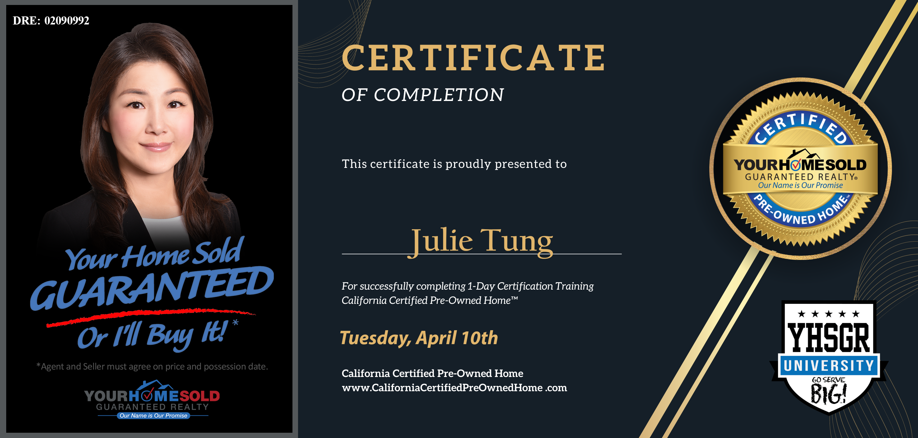 Julie Tung Certified Pre-Owned Home™ Agent Of Your Home Sold Guaranteed Realty Offers Unique Home Selling Experience