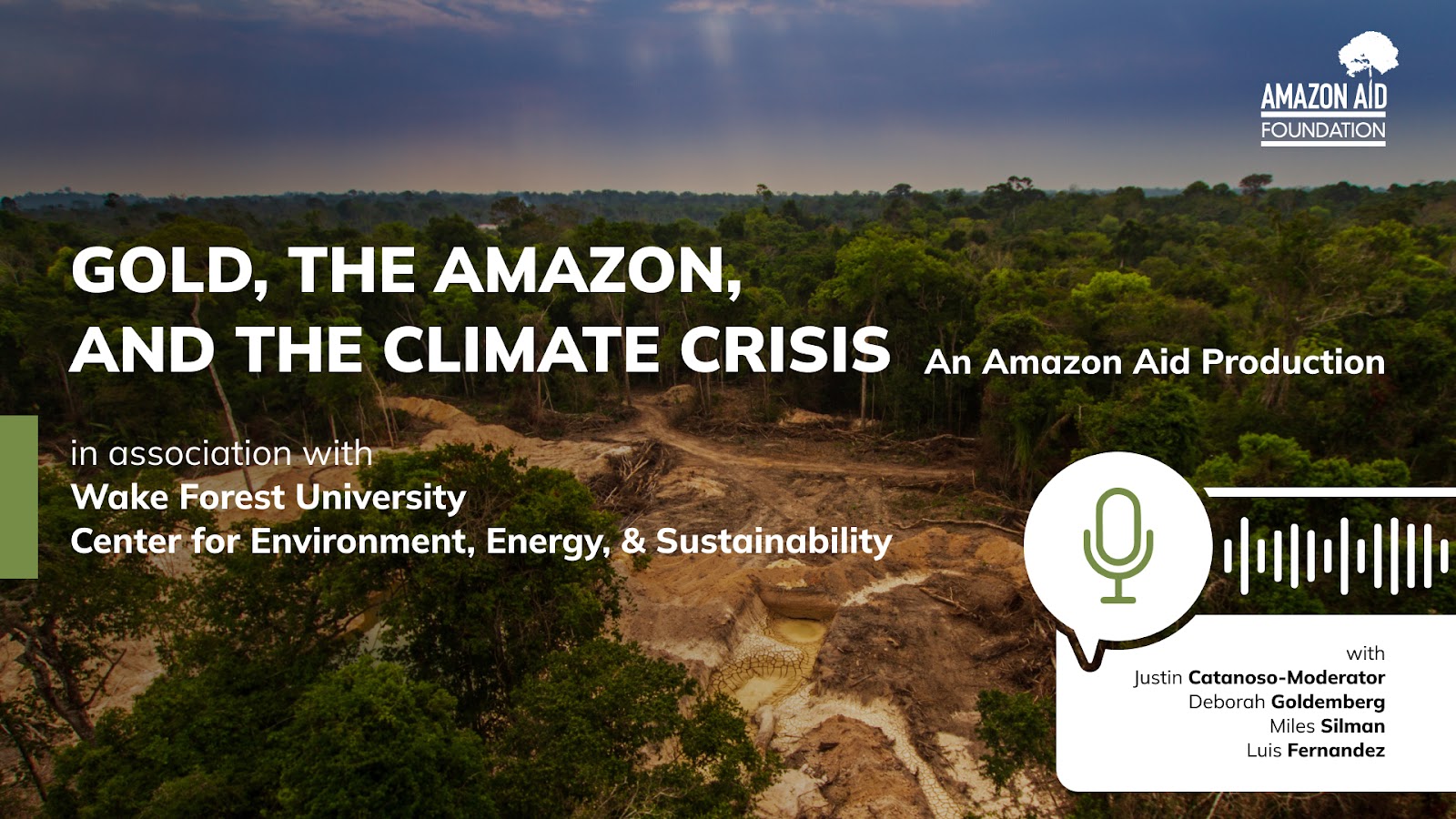 CHARLOTTESVILLE, VIRGINIA, UNITED STATES, April 25, 2023/EINPresswire.com/ -- In honor of Earth Month, non-profit Amazon Aid partnered with Wake Forest University’s Center for Energy, Environment, and Sustainability (CEES) to launch the podcast “Gold, The Amazon and The Climate Crisis.” The one-time podcast brings awareness of the latest research into artisanal and small-scale gold mining’s (ASGM) environmental impacts on the Amazon Rainforest – including the catastrophic toll on human health in the Amazon region and beyond.Led by some of the world’s top environmental experts, Justin Catanoso, Miles Silman, Luis Fernandez and Deborah Goldemberg, the 45-minute podcast examines issues related to rights of local communities, as well as what responsibility corporations have to solve the issue. Listen to the podcast here: https://amazonaid.org/podcast/