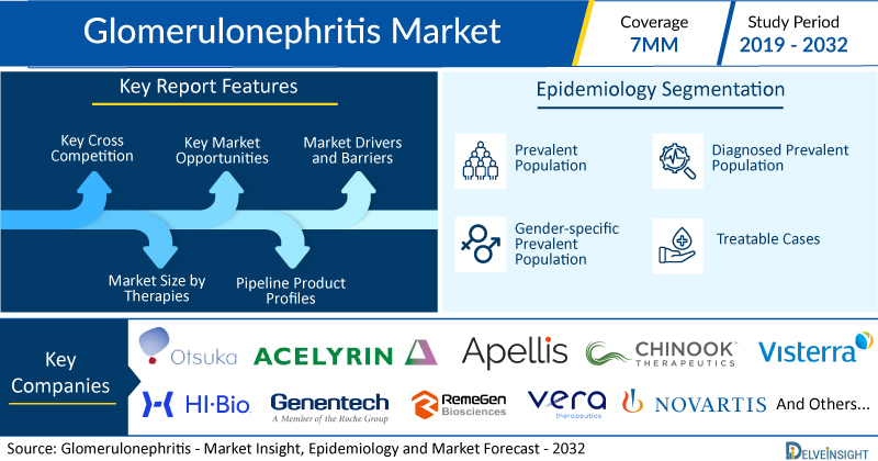 DelveInsight’s Glomerulonephritis Market Insights report includes a comprehensive understanding of current treatment practices, glomerulonephritis emerging drugs, market share of individual therapies, and current and forecasted market size from 2019 to 2032, segmented into 7MM [the United States, the EU-4 (Italy, Spain, France, and Germany), the United Kingdom, and Japan].