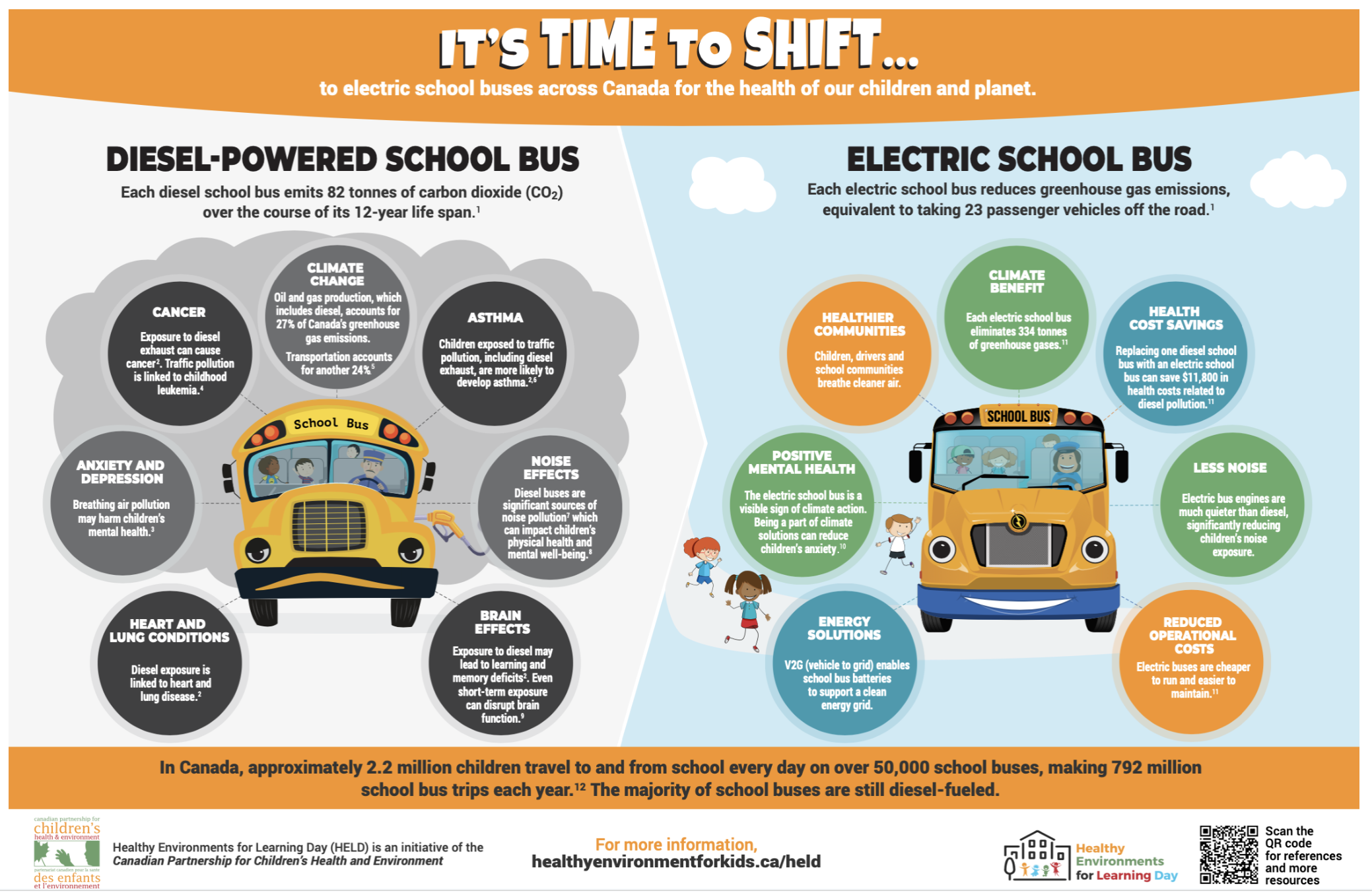 Led by the Canadian Partnership for Children’s Health and Environment (CPCHE), a coalition of 34 organisations made the goal of all-electric school bus fleets in Canada the central focus of this year’s national Healthy Environments for Learning Day (April 27).