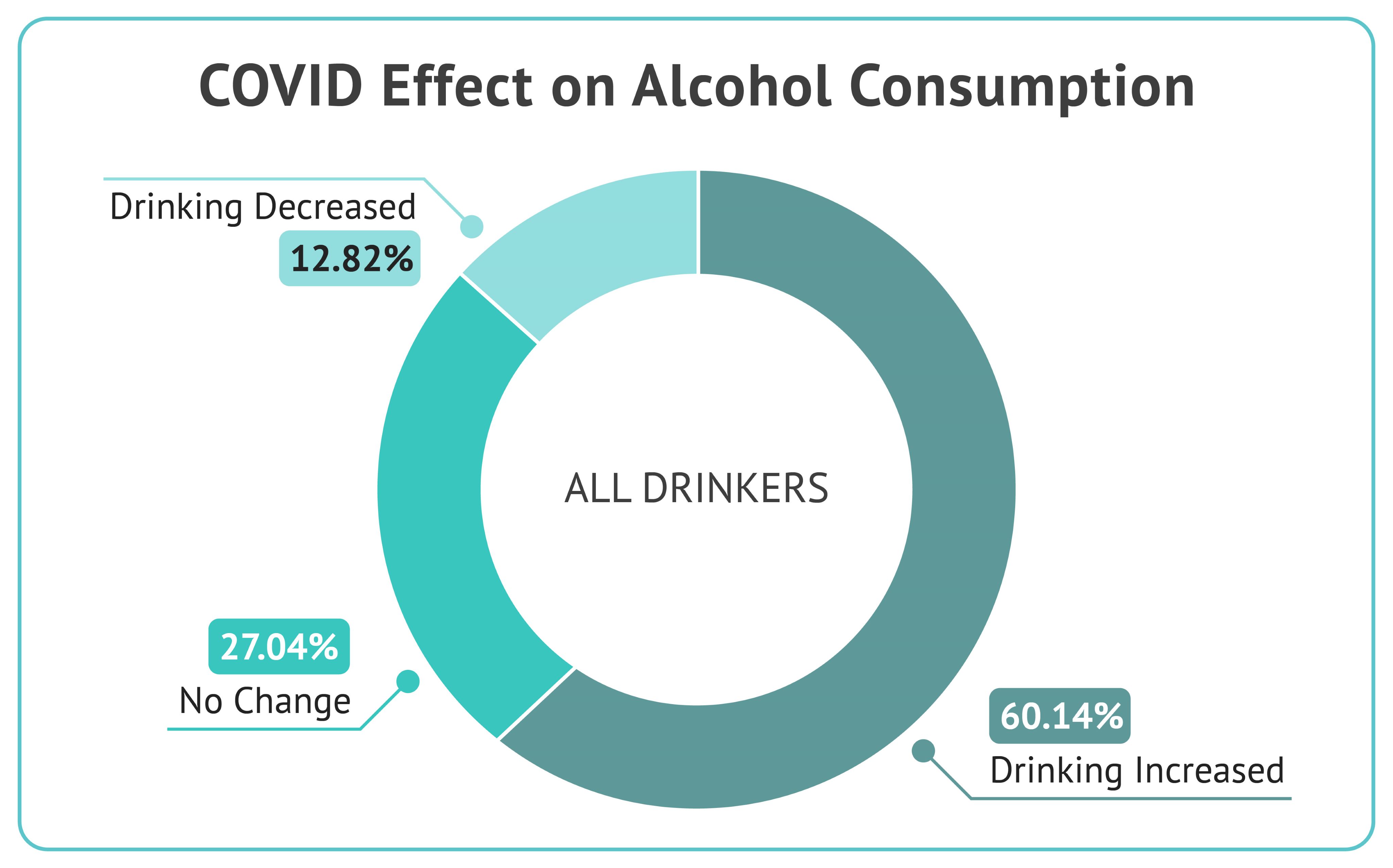 The COVID-19 pandemic has led to a surge in alcohol consumption, and the numbers are shocking. In just three weeks of March 2020, online liquor sales increased by 262%, and liquor store sales rose by 54% YoY. But it's not just about sales figures. A survey by Johns Hopkins-University of Maryland-Baltimore found that over 60% of respondents drank more alcohol after March 1, 2020 due to stress. One-third of those surveyed reported binge drinking at least once, and 7% engaged in extreme binge drinking. Tragically, some people died after drinking homemade alcohol to protect themselves from COVID-19.