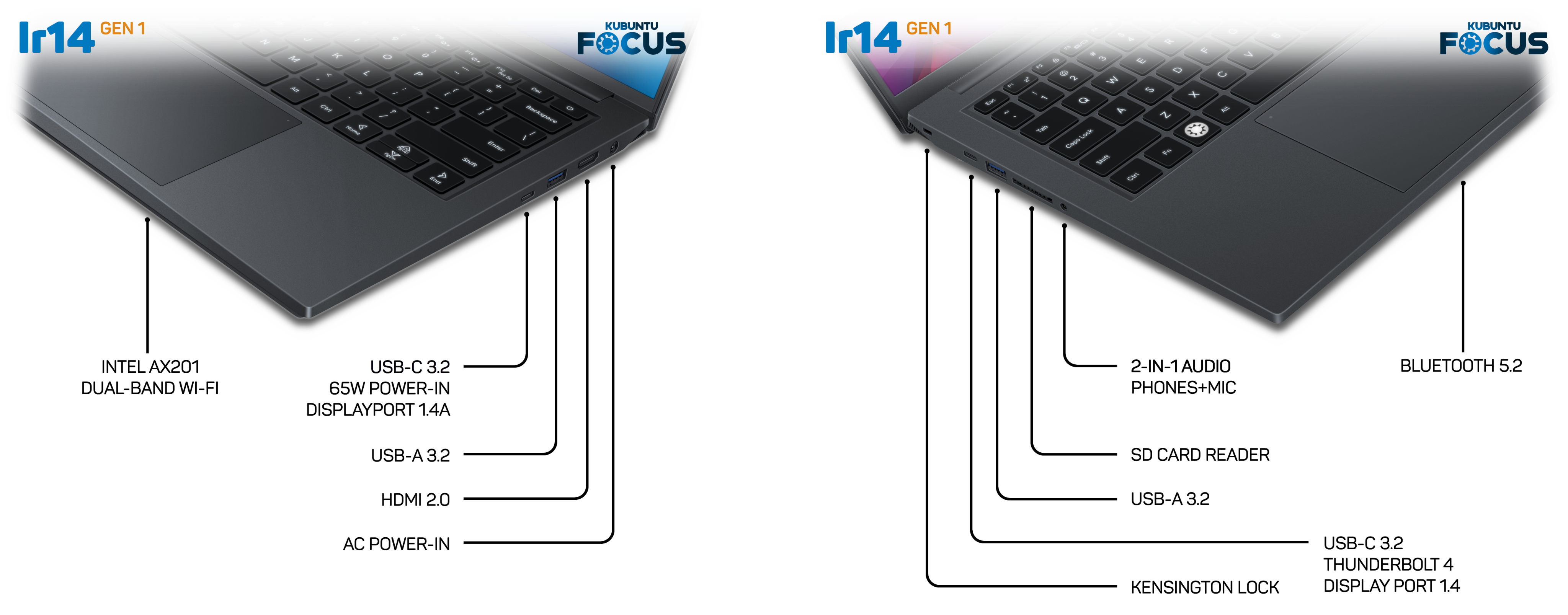 SAN FRANCISCO, CA, USA, April 27, 2023/EINPresswire.com/ -- Today the Kubuntu Focus team announces their latest Linux laptop: The Focus Ir14 developed in partnership with Carbon Systems of Santa Rosa, CA. This laptop is an affordable, enterprise-ready system designed to exude quality everywhere the customer looks and touches. This is the fourth Focus model featuring Kubuntu LTS and the KDE Plasma interface.This 3-pound laptop has a 14-inch, 450-nit, narrow-bezel 1920×1200 display with 100% sRGB color reproduction. It also features a centered precision touchpad, all-alloy construction, 6 hours of battery life, and can charge from a USB-C display cable.