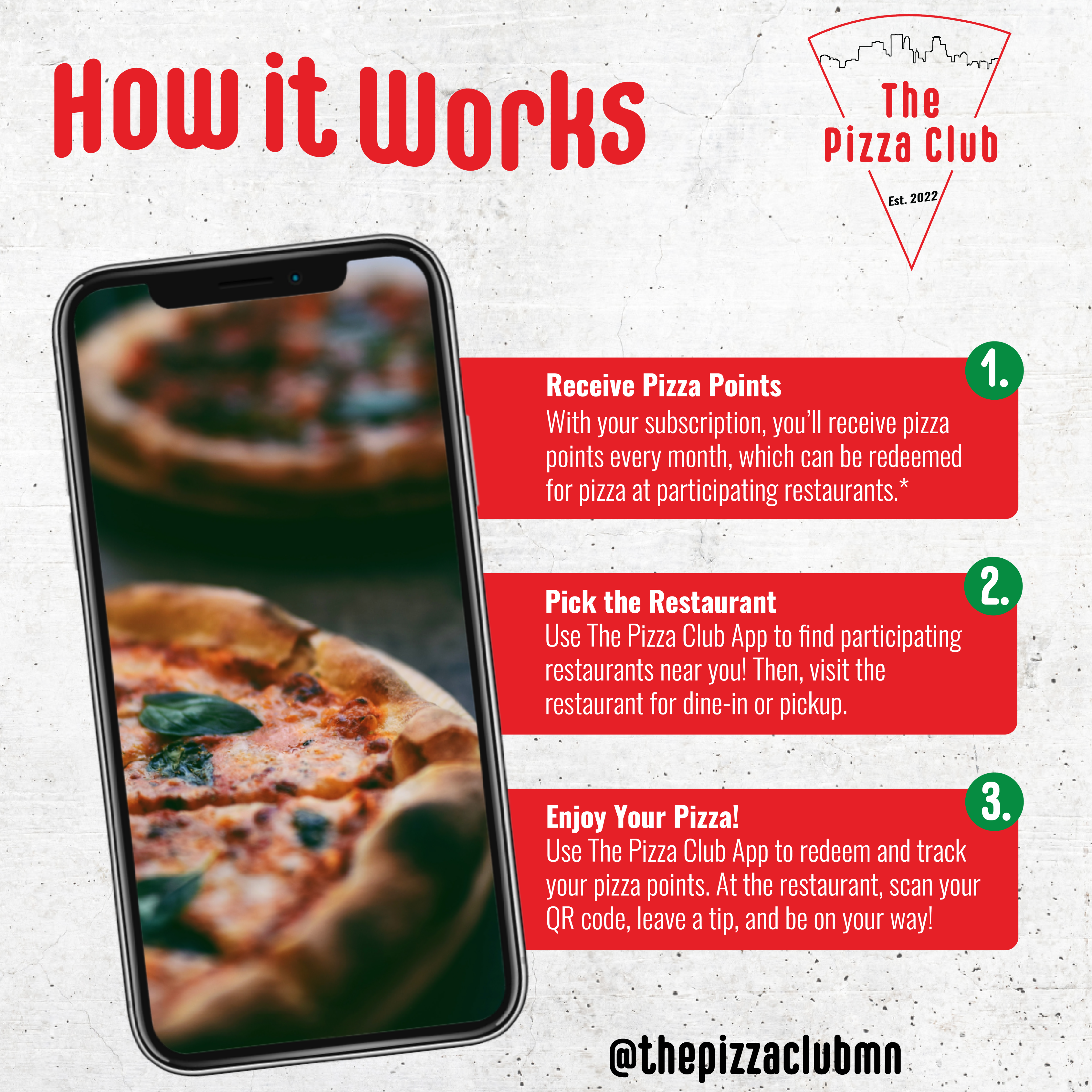 The Pizza Club membership program is an amazing way for pizza lovers in Minnesota to discover and eat more pizza for less money and help our local pizzerias flourish!