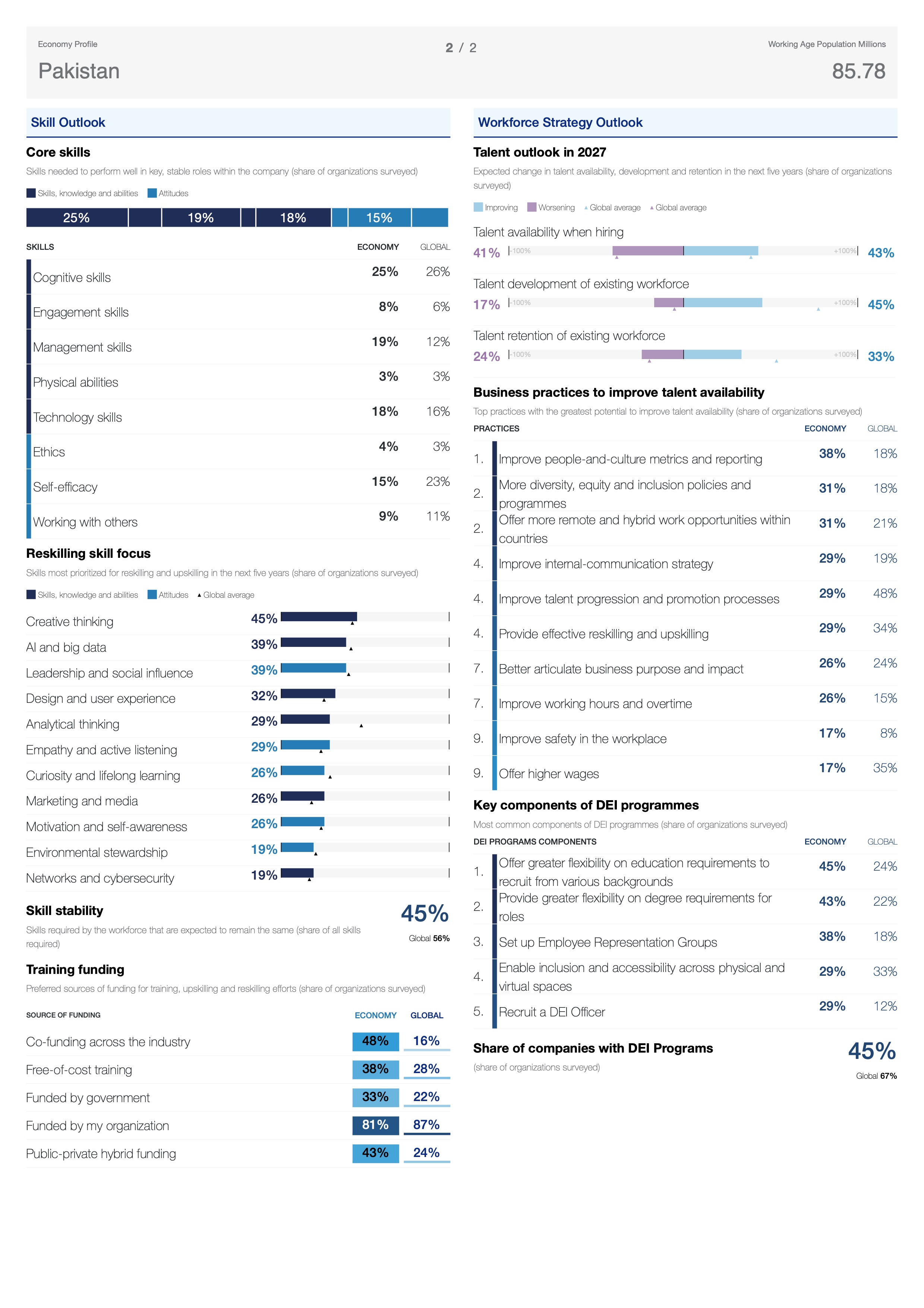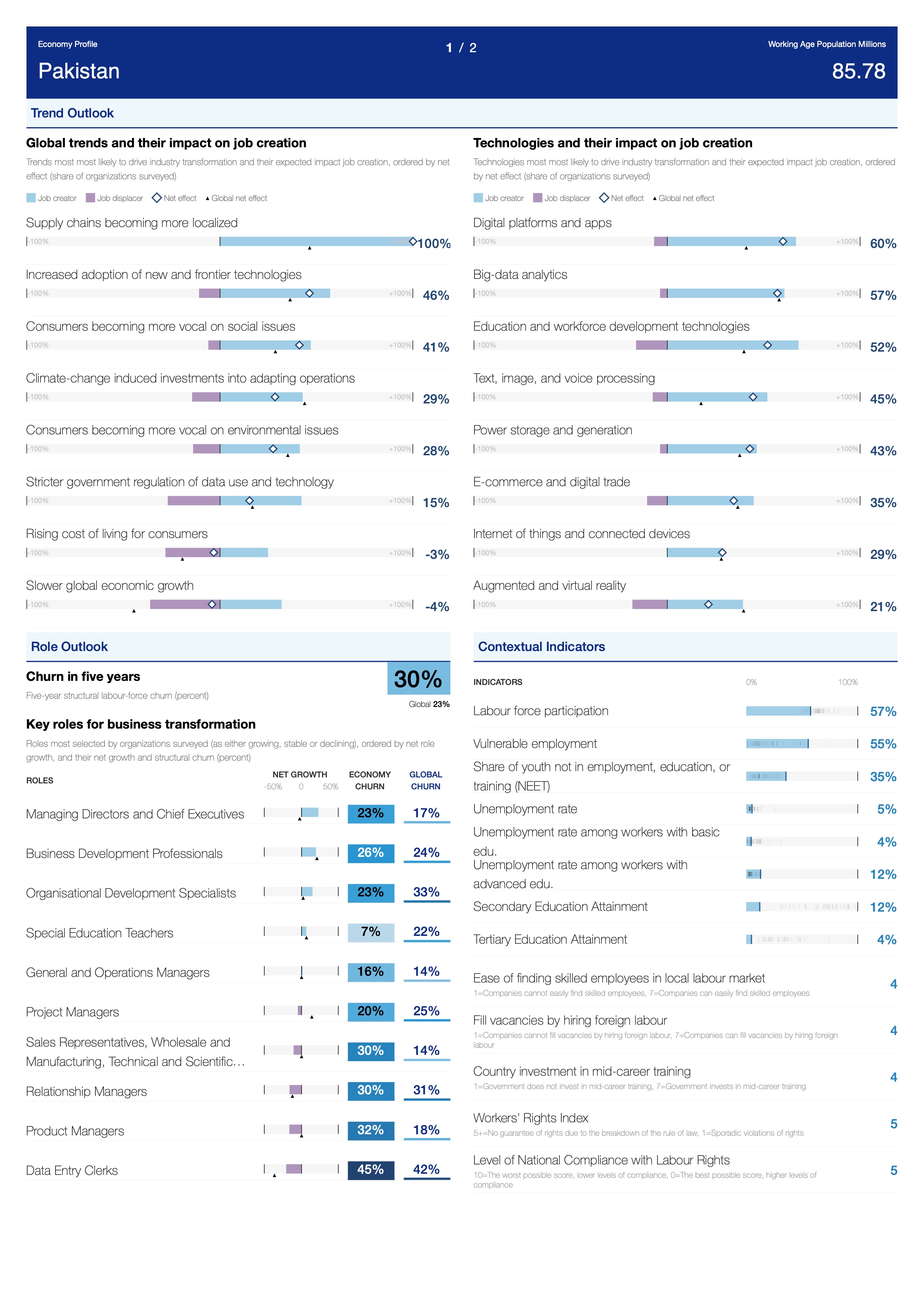 The report delves into key aspects, such as global trends and technologies, role outlooks, core skills, and workforce strategies, to provide a holistic view of the job market landscape in the country. The findings highlight Pakistan's strengths and areas for improvement as it navigates the rapidly changing global job market.