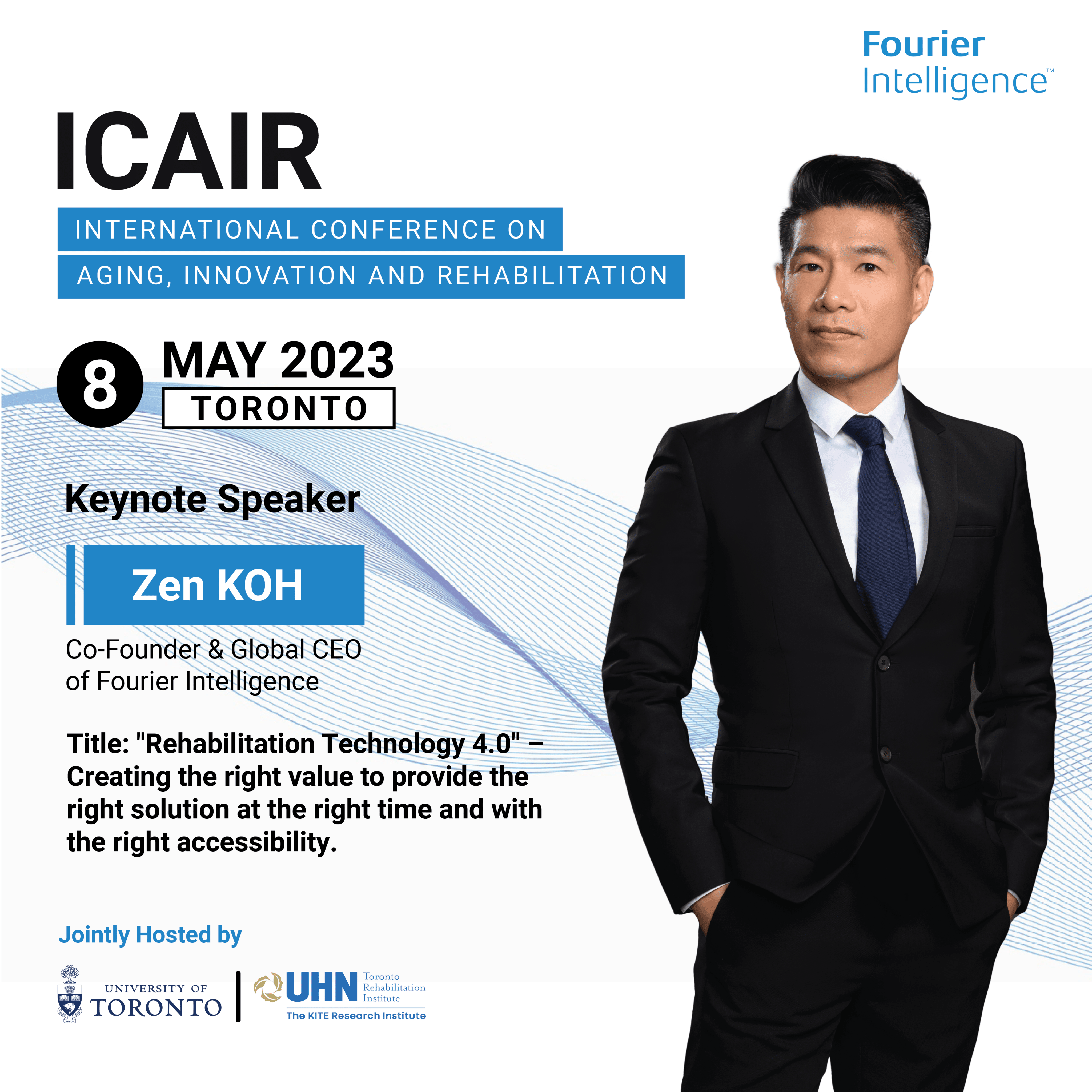 TORONTO, ONTARIO, CANADA, May 2, 2023/EINPresswire.com/ -- Fourier Intelligence, a global technology company specialising in rehabilitation robotics and artificial intelligence, will participate in the upcoming International Conference on Aging, Innovation and Rehabilitation (ICAIR). — Zen Koh, Co- Founder & Global CEO of Fourier Intelligence