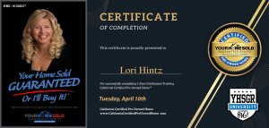 Your Home Sold Guaranteed Realty's Manager, Lori Hintz, Completes Certified Pre-Owned Home™ Train-the-Trainer Course