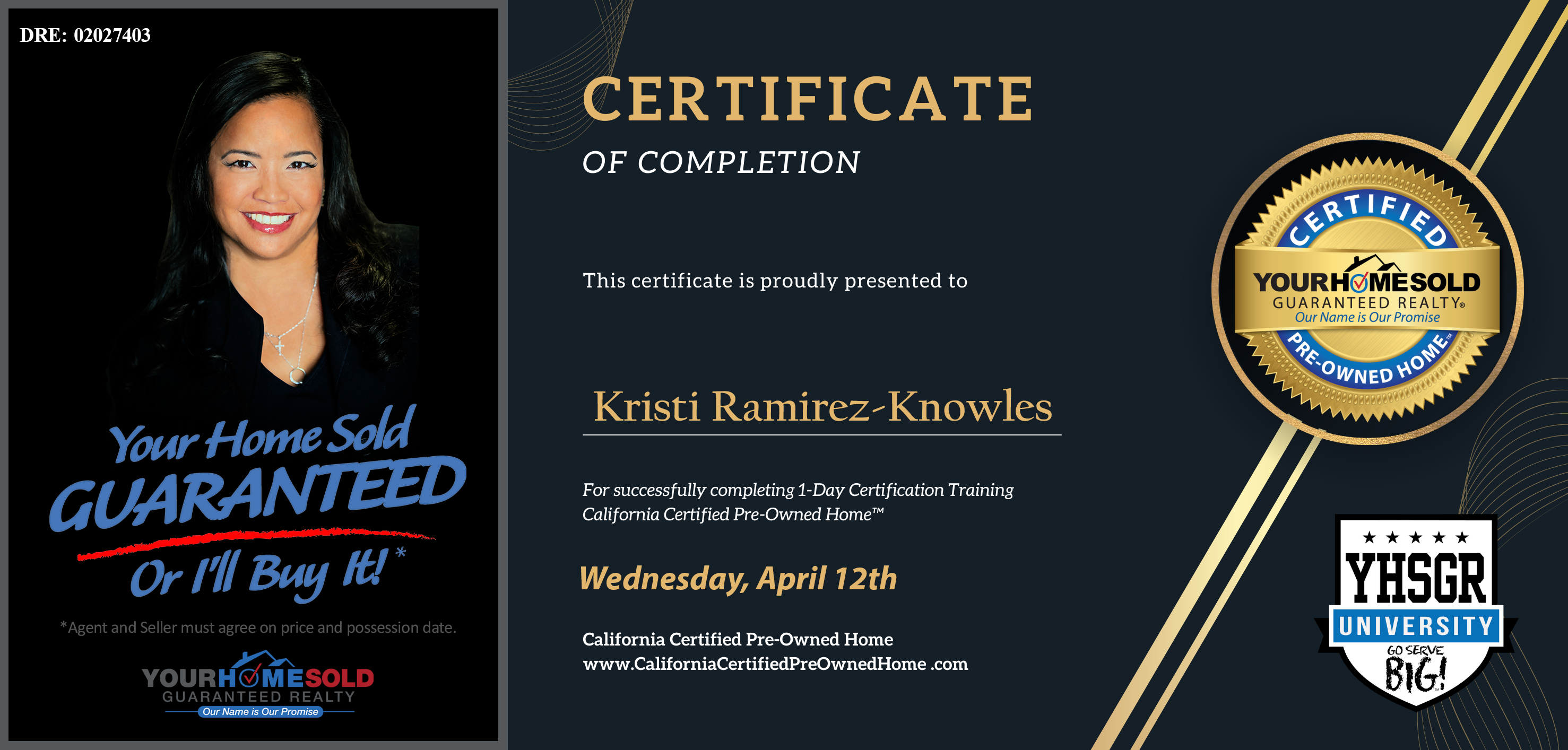 Revolutionizing Home Sales: Kristi Ramirez-Knowles Earns Certified Pre-Owned Home™ Agent Certification at YHSGR