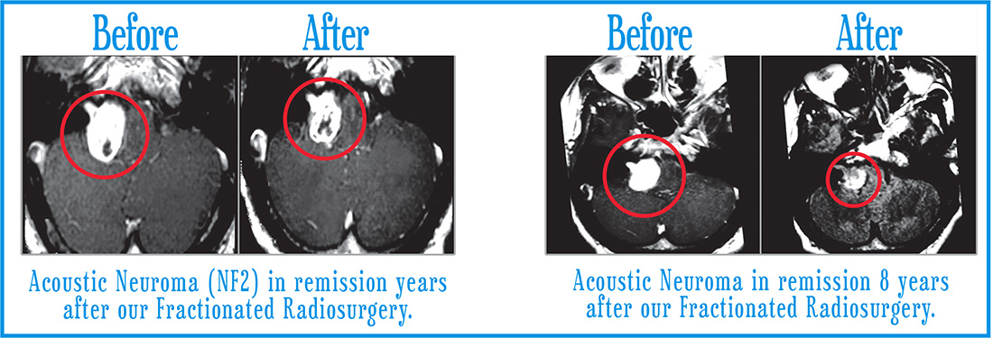 Surgery, stereotactic radiosurgery, and proton therapy are treatment options for certain types of cancerous tumors, including Acoustic Neuroma. The specific type of treatment recommended for a patient depends on the size and location of the tumor, as well as the patient's overall health and medical history.