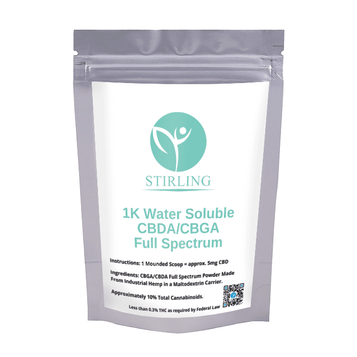 The water-soluble full spectrum powder CBDA/CBGA, water-soluble CBDA powder, water-soluble CBGA powder, water-soluble CBD isolate powder, and pure CBD isolate products are now available on Stirling's website.