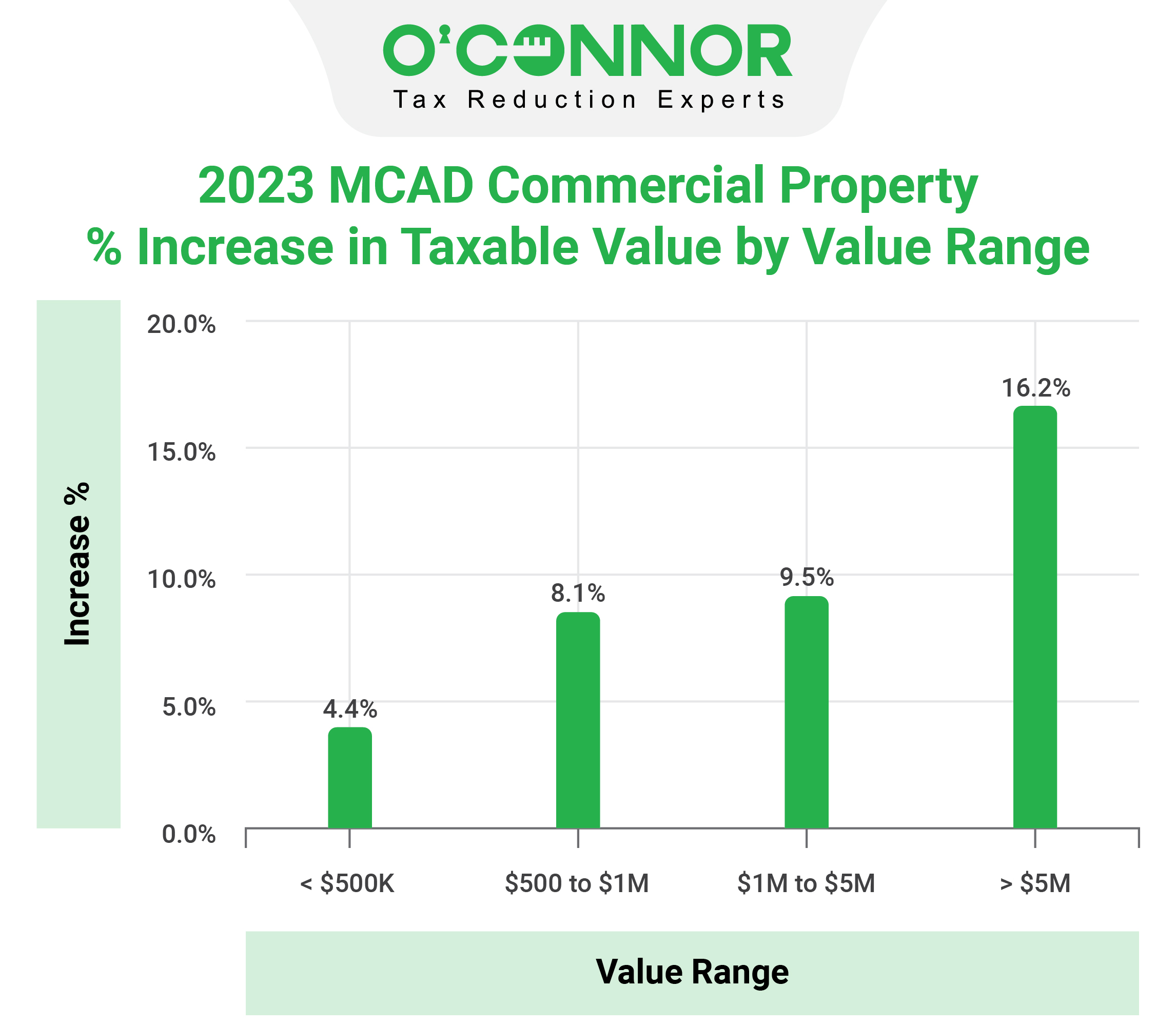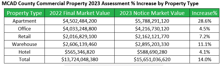 2023 Commercial property values in Montgomery County increased by 14% while commercial real estate value fell.