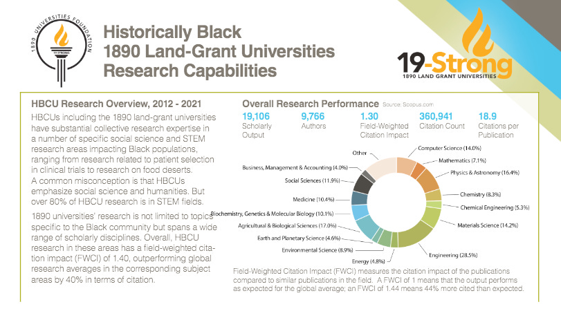- HBCUs, including the 1890 land-grant universities, have significant collective research expertise in numerous social science and STEM research areas impacting Black populations. The 1890s have a specific strength in agricultural and biological science
