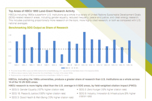 - HBCUs, including the 1890 universities, produce a greater share of research than other U.S. Institutions across 14 of the 16 United Nations Sustainable Development Goals (SDGs).
