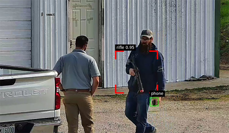 Actual footage from our Scout identifying individuals brandishing different types of firearms.