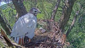 Leucistic birds are very rare, but never before has there been a live stream with a leucistic red-tailed hawk. Especially one that has hatched a chick!