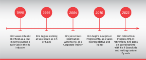 Before he entered the RV industry, Kim worked as a coal miner in Richfield, Utah. Wanting to look for safer job, Kim began working at Wing Enterprises where he helped with the creation of the Quick Draw ball mount, before becoming vice president of sales at the newly formed QuickDraw company. Kim went on to work for Coast Distribution Systems Inc. as a Corporate Trainer, before eventually joining Progress.