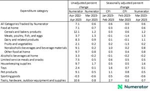 CHICAGO, May 09, 2023 (GLOBE NEWSWIRE) -- Numerator projects the Consumer Price Index for everyday consumer purchases increased 0.6% month-over-month in April, compared with 0.0% month-over-month in March.