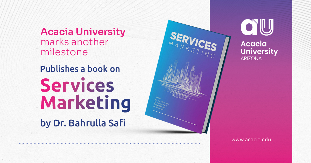 "It is with great pleasure that we announce the release of this book on Services Marketing" stated Dr. Bahrullah Safi, Vice President - International at Acacia University.