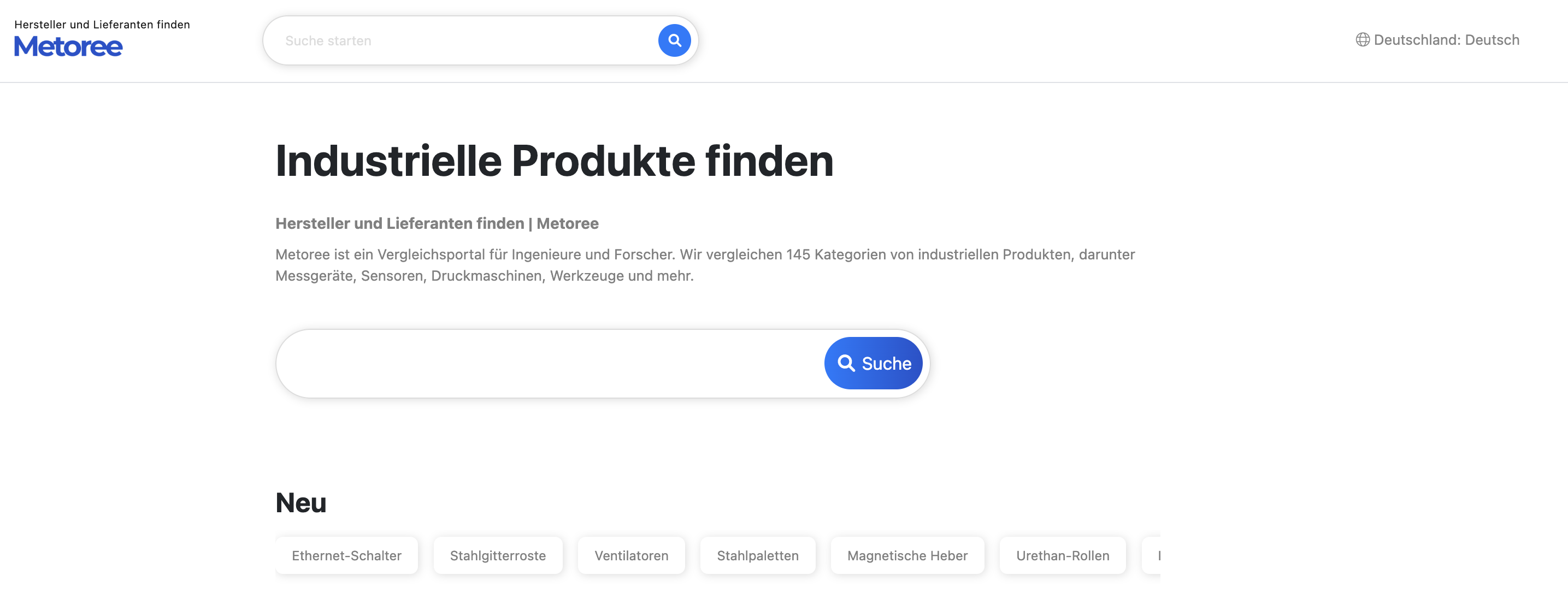 Metoree startet in Deutschland: Die Plattform ermöglicht Vergleich von Industrieprodukt-Herstellern & Lieferanten. Expansion und Kategorie-Erweiterung geplant.