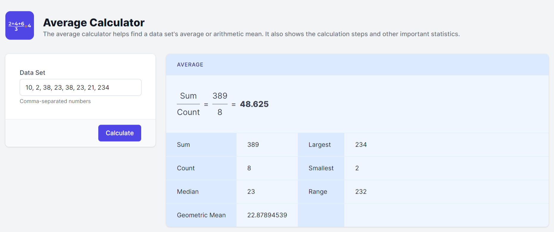 LAS VEGAS, NEVADA, USA, May 17, 2023/EINPresswire.com/ -- In a data-driven world, Calculator.io brings forth another practical solution: the Average Calculator. This easy-to-use online tool calculates the average of a set of numbers, taking the sum of the data points and dividing it by the count, a fundamental operation in statistical analysis.The Average Calculator (https://www.calculator.io/average-calculator/) has applications in a broad range of sectors. In education, teachers can use it to calculate students' grade averages, and students can use it to monitor their progress. Researchers, statisticians, and data analysts will find it helpful for their data interpretation and analysis tasks.