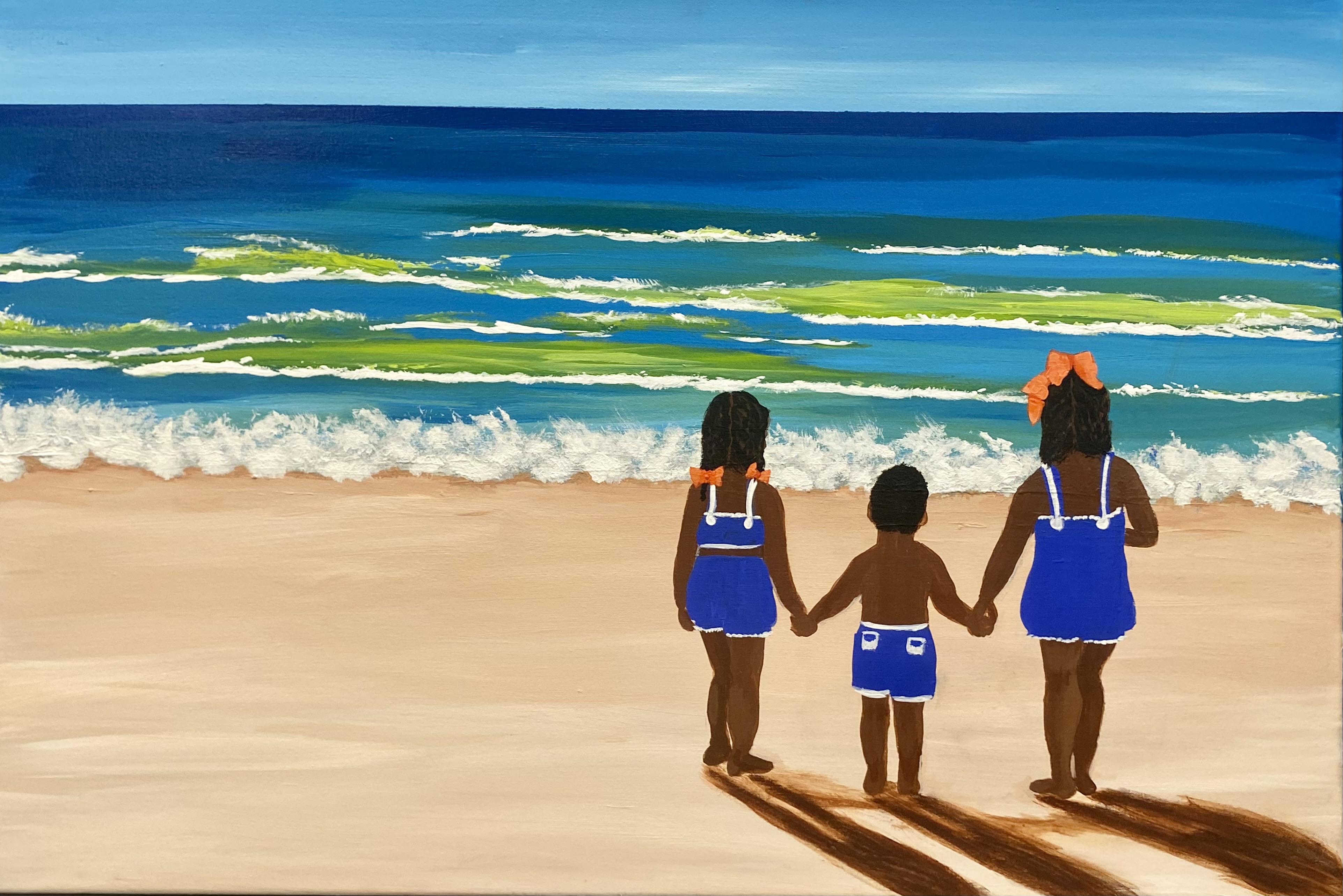 Born in Jamaica, Vivia Barron immigrated to the US and settled in St. Petersburg, FL. Before becoming a painter, she was known for her extravagant, artistic plating as a chef. Her artistic inspiration comes from vintage postcards and antique photographs, and her work centers around themes of joy, representation, and the beauty of nature, particularly water.