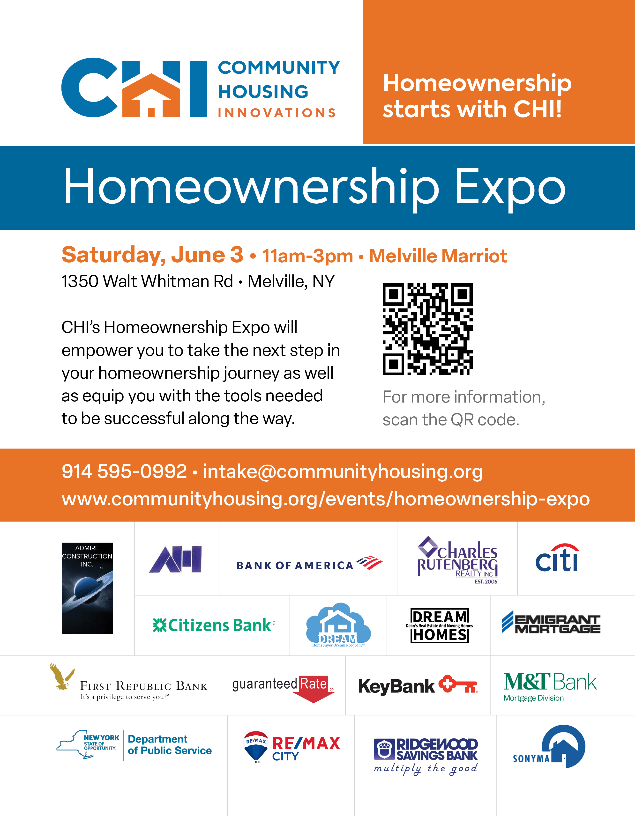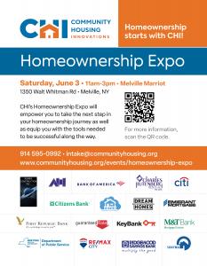 WHITE PLAINS , NEW YORK , UNITED STATES , May 22, 2023/EINPresswire.com/ -- Community Housing Innovations is hosting a Homeownership Expo on Saturday, June 3, 2023, from 11:00 am – 3:00 pm at the Melville Marriott located at 1350 Walt Whitman Road in Melville, NY. This year’s Homeownership Expo will empower attendees to take the next step in their homeownership journey and give them the tools needed to be successful.