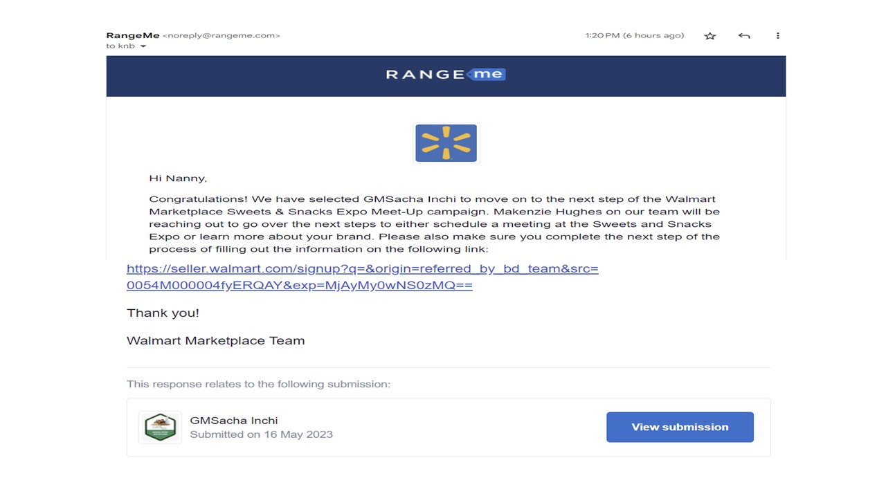 GMSacha Inchi brand has also been accepted by the Walmart Marketplace team at Sweets & Snacks Expo.