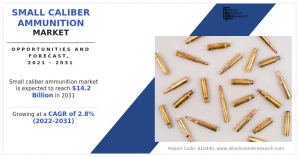 According to a recent report published by Allied Market Research, titled, “Small Caliber Ammunition Market by Size, Application, and Casing: Global Opportunity Analysis and Industry Forecast, 2022–2031,” the global small caliber ammunition market was valued at $ 10,779.2 million in 2021, and is estimated to reach $14,190.6 million by 2031, registering a CAGR of 2.8% from 2022 to 2031.
