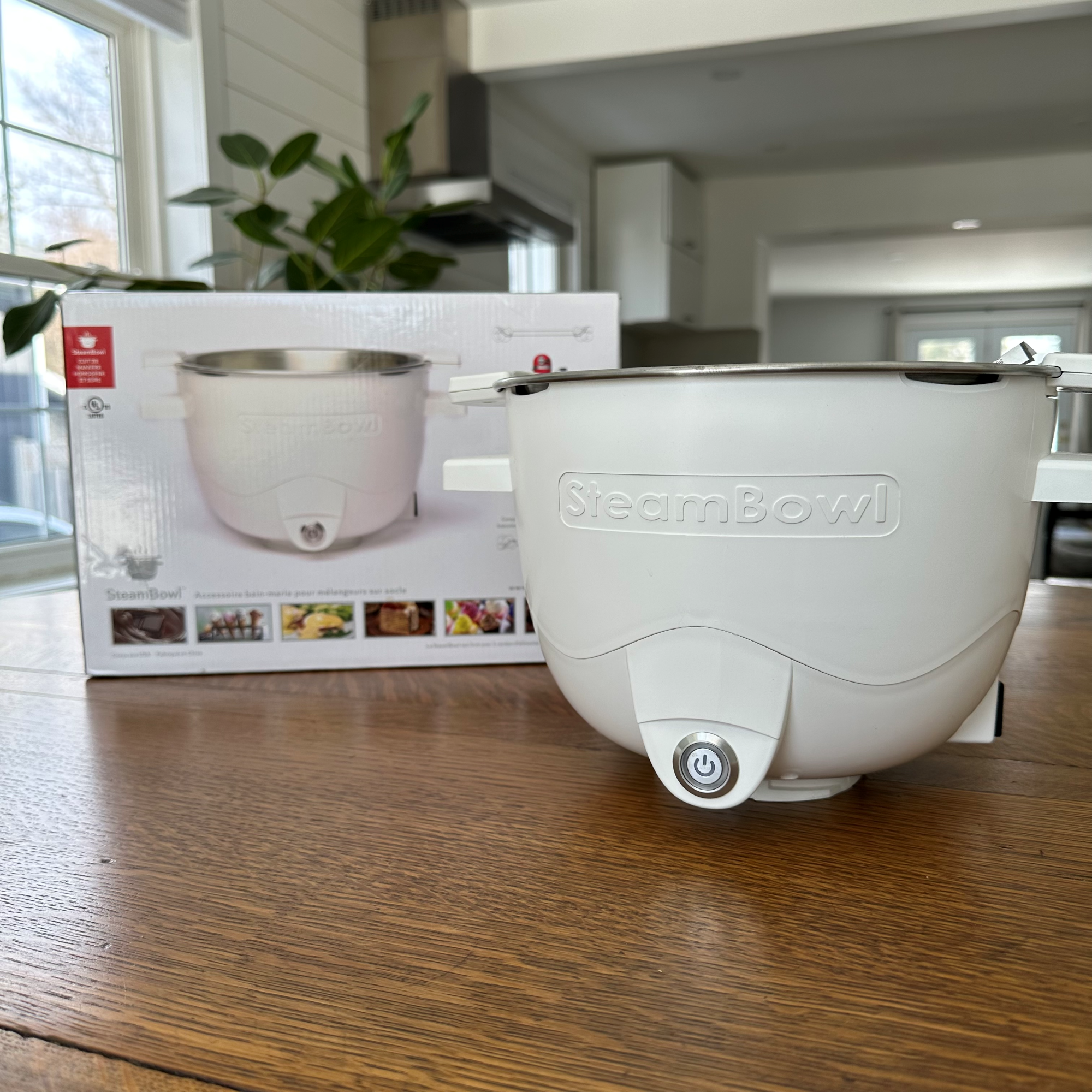 The SteamBowl ™ is the only double-boiler attachment for stand mixers. It is compatible with KitchenAid® Bowl-Lift and Tilt-Head Mixer, and Cuisinart® Precision Master 5.5 Quart Stand Mixer.
