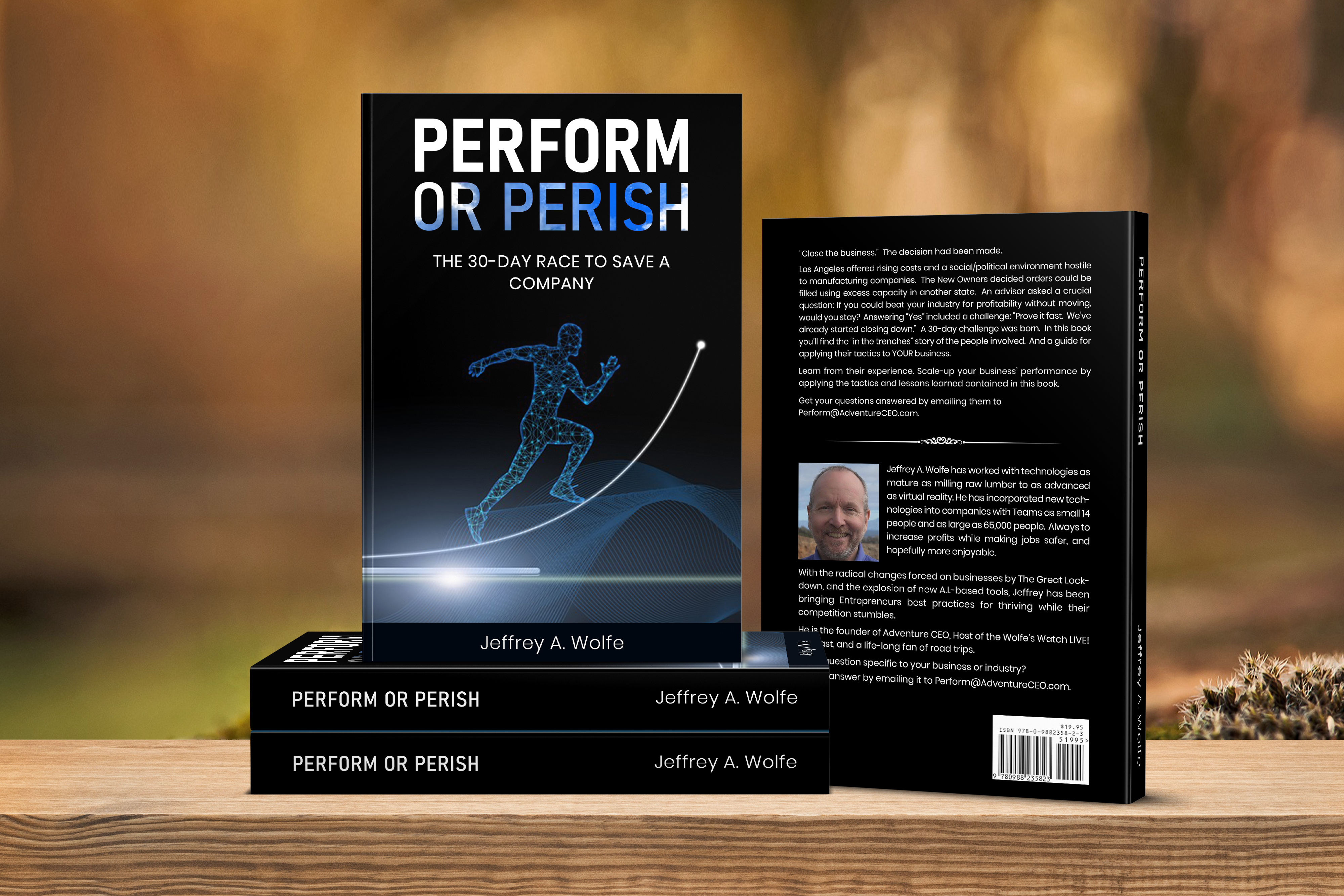 Jeffrey A. Wolfe has worked with technologies as mature as cutting raw lumber to as advanced as virtual reality. He has incorporated new technologies into companies with Teams as small 14 people and as large as 65,000 people. Always to increase profits while making jobs safer, and hopefully more enjoyable. With the radical changes forced on businesses by The Great Lockdown, and the explosion of new A.I.-based tools, Jeffrey has been bringing Entrepreneurs best practices for thriving while their competition stumbles. He is the founder of Adventure CEO, Host of the Wolfe's Watch LIVE! Podcast, and creator of the one-person play "The Mentor." To learn more about the Author, go to AdventureCEO.com.