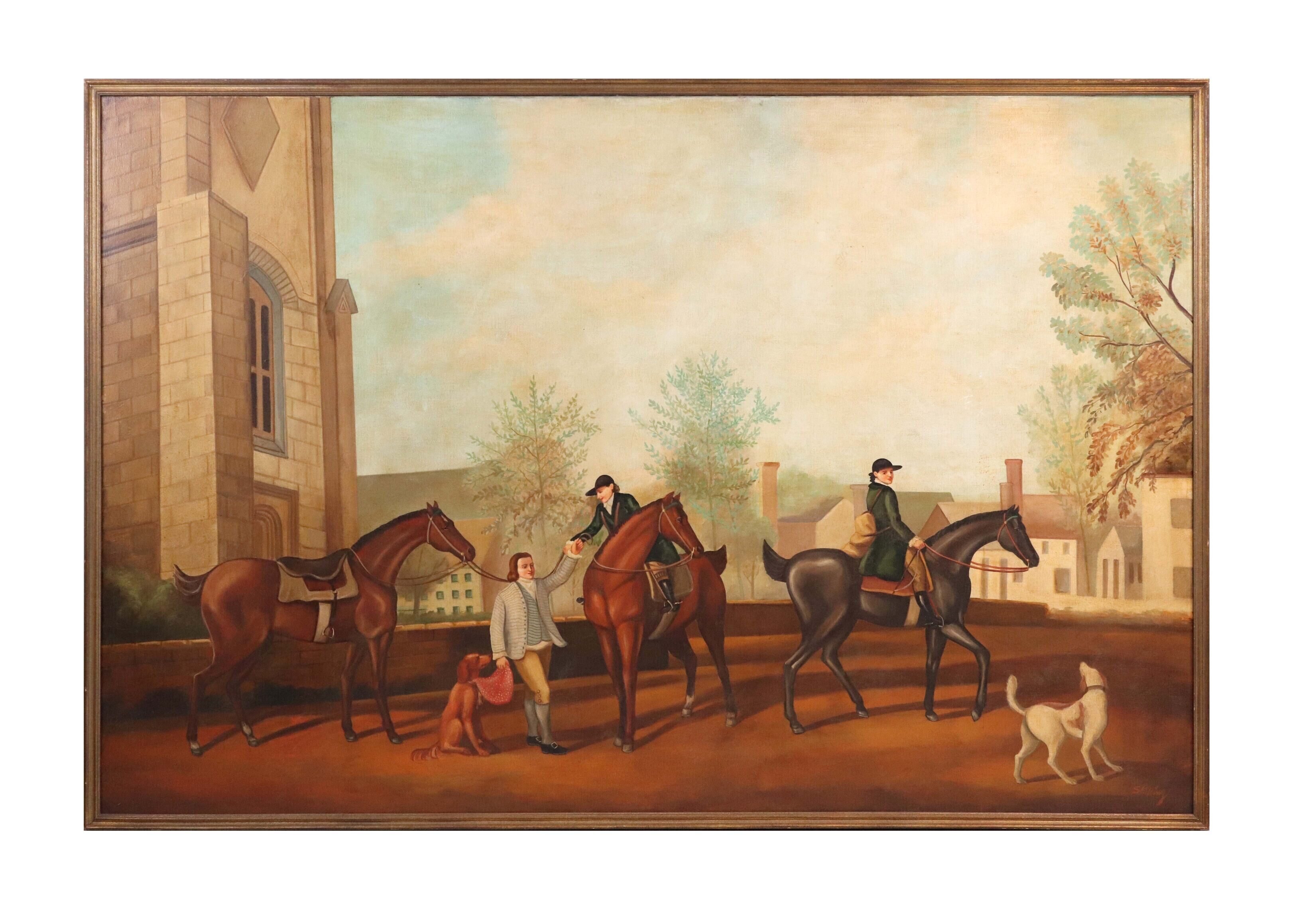 Oil on canvas painting by William Skilling (American/British, 1862-1964), titled Hunting Party, artist signed.
