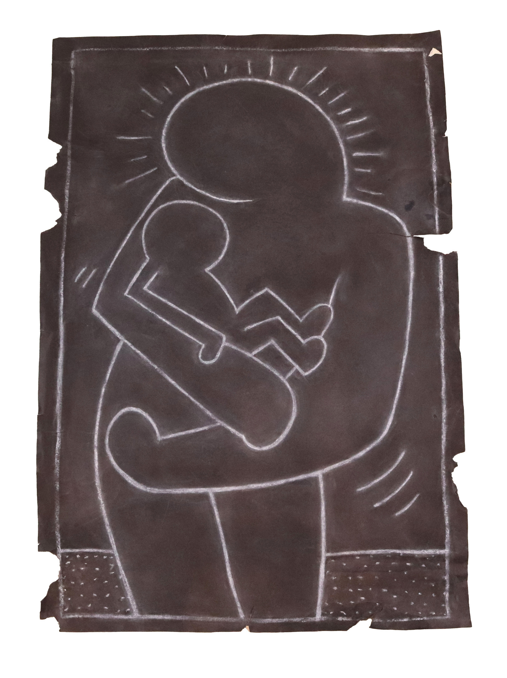 Modern and contemporary works include two Keith Haring (American, 1958-1990) chalk subway graffiti art drawings – Mother and Child (shown) and See no Evil – circa 1983-1985.