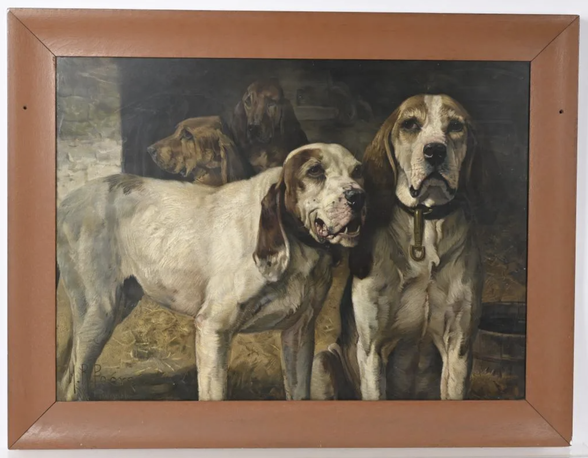 A classic image that would be instantly recognizable to collectors is the 1907 Henry Rankin Poore lithograph depicting four hunting dogs known as “bear dogs.” The example in Milestone’s sale, which measures 24 by 34½ inches (not counting frame) is expected to sell in the vicinity of $1,000-$2,000.
