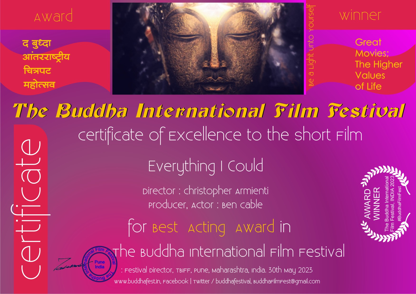 Accomplished actor Ben Cable has received the esteemed Best Actor award at THE BUDDHA International Film Festival in Pune, India, in recognition of his exceptional performance in the poignant short film "Everything I Could." The festival, which is known for recognizing excellence in cinema, has honored Cable's extraordinary talent and breakout performance. This distinction solidifies his reputation as a brilliant and socially conscious actor of his generation.