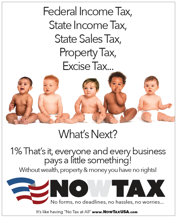 The Now Tax Formula™ 1% Flat Tax is; The first and only A-political (non-partisan) sole/single tax collection system (with the least amount of rules, regulations, and laws) that spreads the cost of the federal tax budget (infrastructure, government expenses, debt, entitlements, and benefits) over all segments of the economy using the largest common denominator (all the total sales, and transactions of all segments of the economy-TEST) divided into the federal budget to determine and create the lowest possible tax rate; to have little or no negative effect on the economy. The largest common denominator means all sales and all transactions from all segments of the economy: all citizens, non-citizens, consumers, organizations, enterprises, and businesses. (Excluding internal transfers of personal or business transactions).