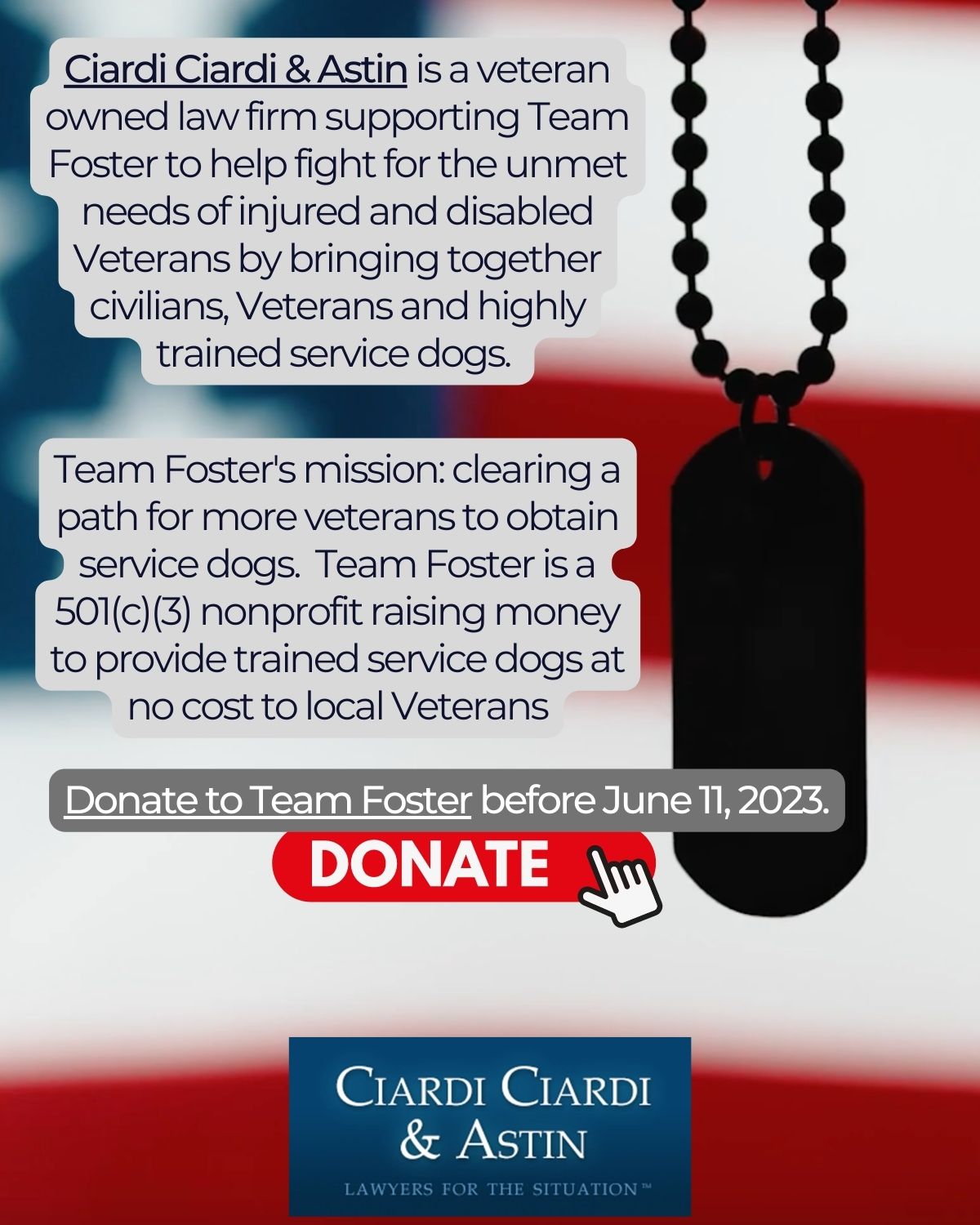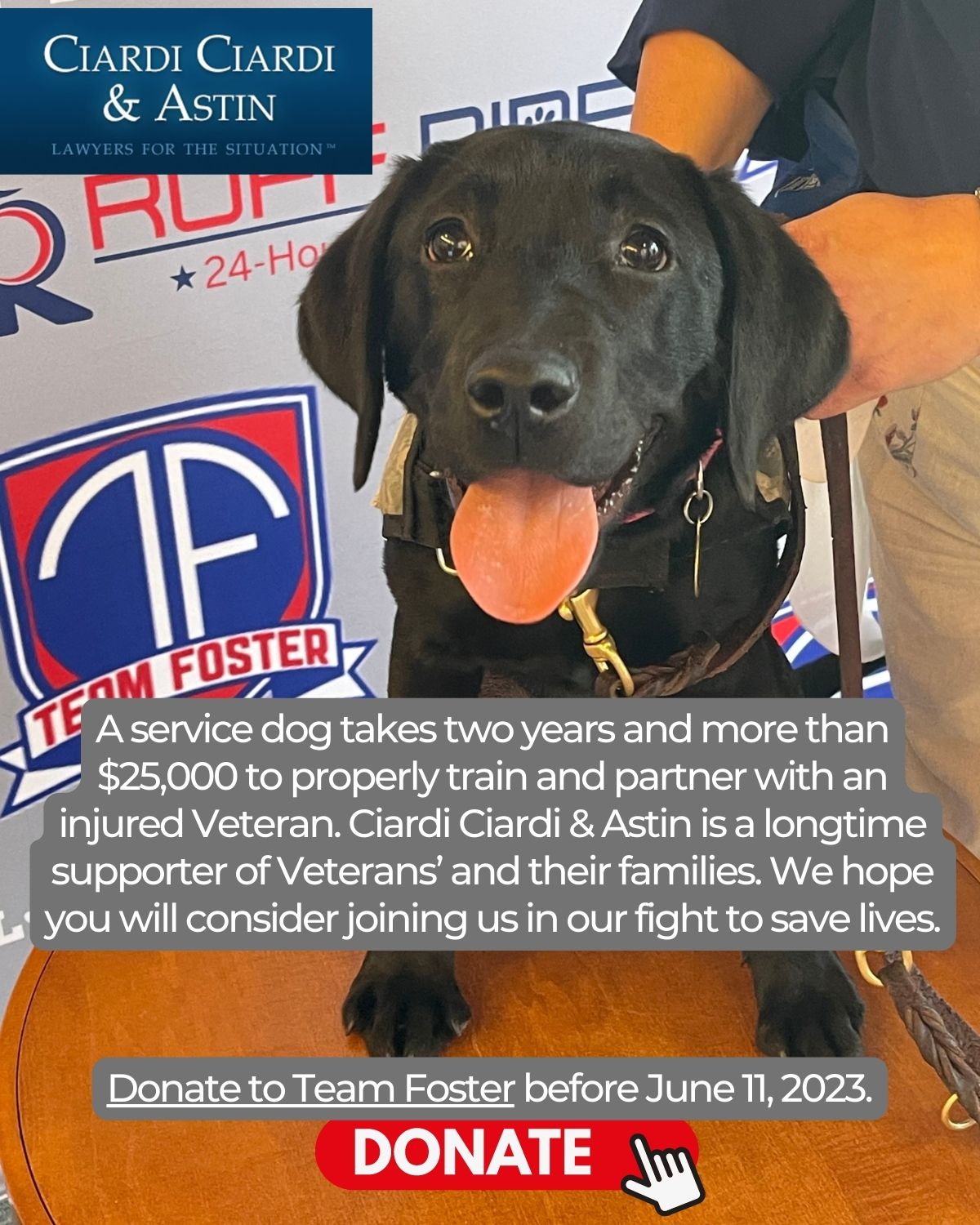 Ciardi Ciardi & Astin and Team Foster aims to expand the availability of service dogs & enhance the quality of life for veterans in our Philadelphia community.
