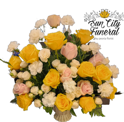 Sun City Funeral Floristâ„¢ is a local florist in Arizona. We deliver sympathy & funeral flowers into Sun City, Sun City West, Peoria and the surrounding area. Our arrangements include; casket & standing sprays, plants, baskets, and wreaths. Our compassionate florists will work with the funeral service, church, or other venue to ensure that your floral arrangement order is timely and accurate.