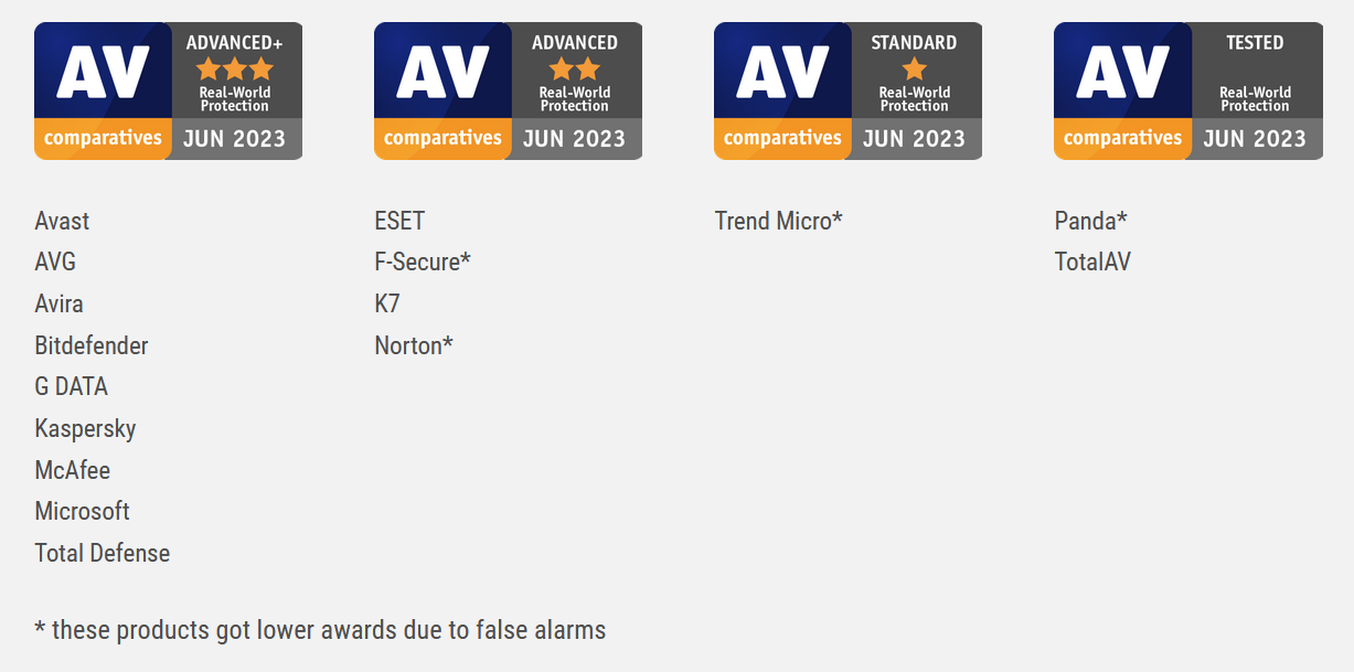 In this Consumer Real-World Protection Test, nine vendors reached the highest award level, ADVANCED+. These were (in alphabetical order):