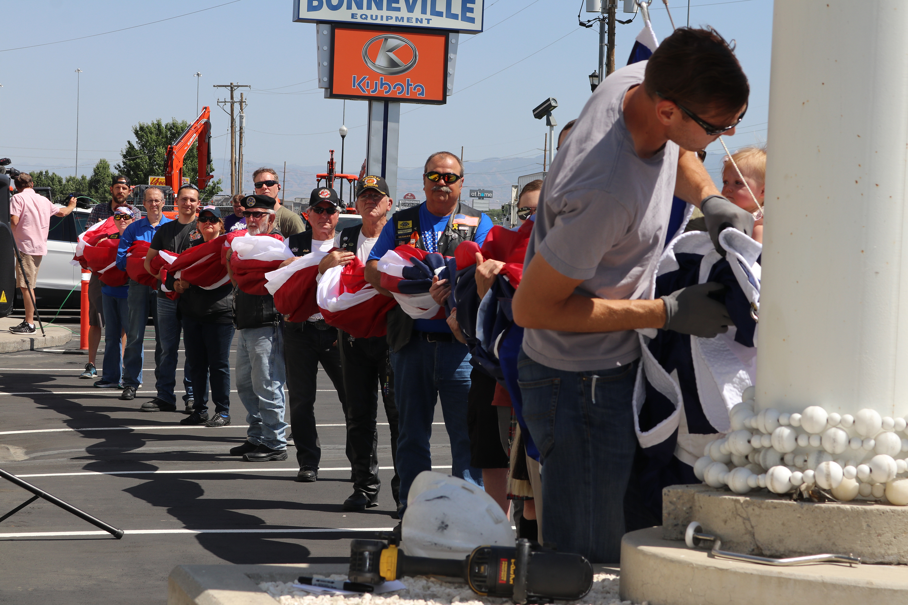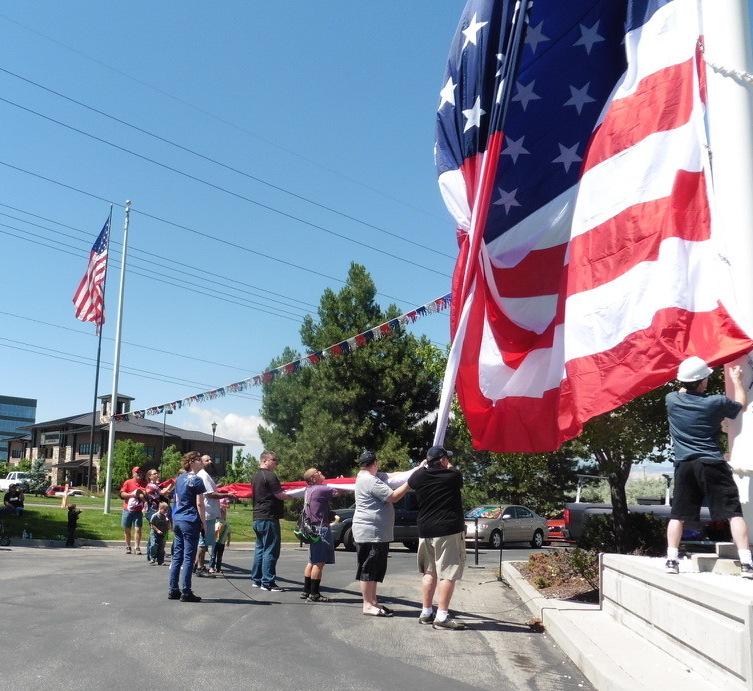 We invite the public to come and assist the naval sea cadets in helping us raise this magnificent 30’ x 60’ American Flag.