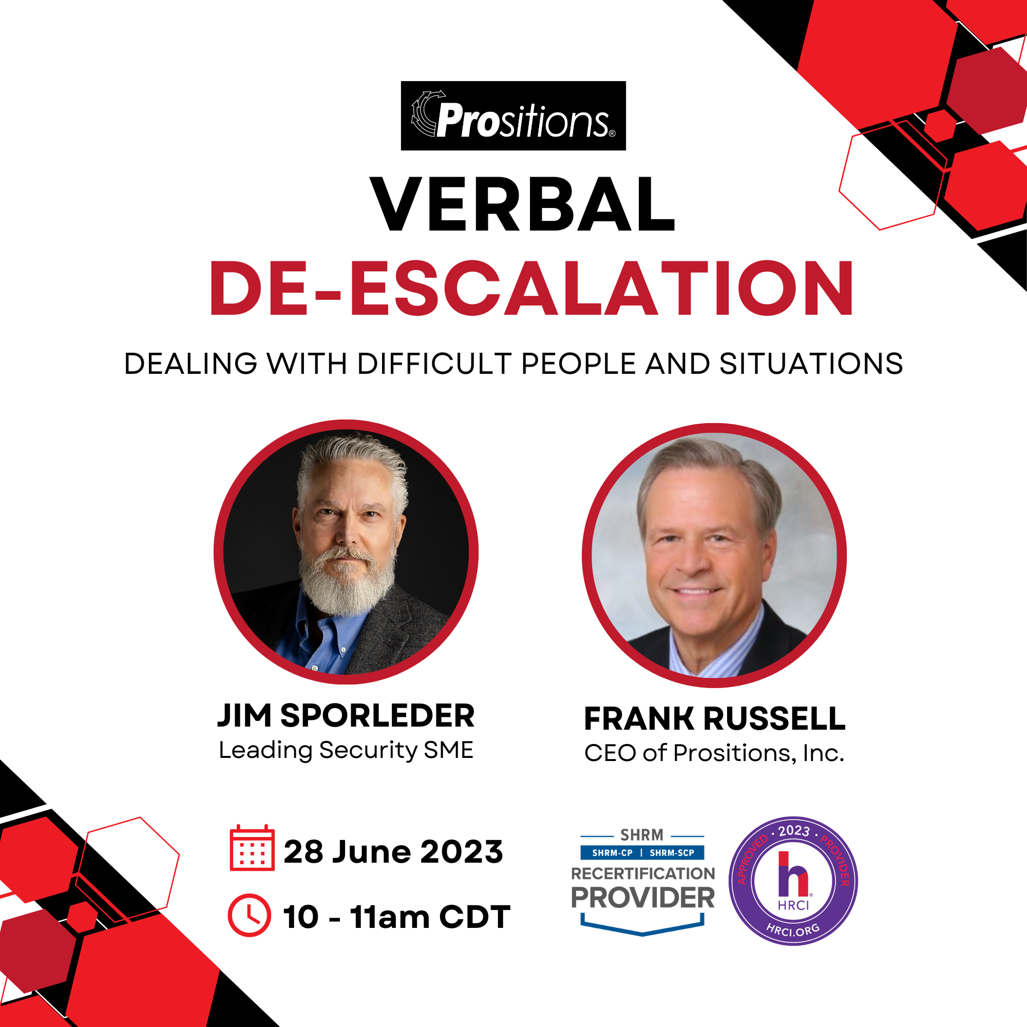 Prositions, Inc. is hosting a complimentary webinar with security expert Jim Sporleder on how to de-escalate potentially dangerous situations in the workplace.