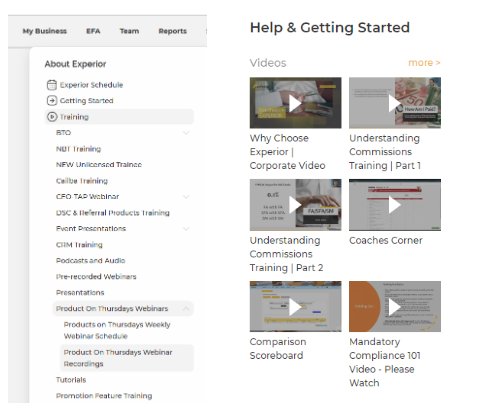Experior's vast library of trainings is an invaluable resource for agents who miss the live webinars or want to revisit past trainings. With most training conveniently stored online, agents can access the materials anytime and from anywhere, keeping them updated on the latest products, industry trends, and regulations.