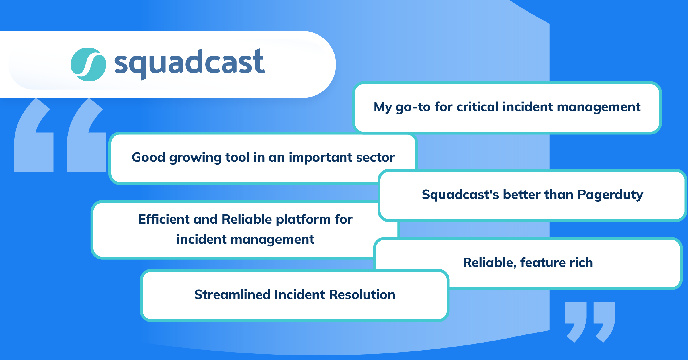 For 10 consecutive quarters, Squadcast has consistently demonstrated its leadership position on G2, maintaining the top spot. The company's dedication to customer satisfaction has been instrumental in securing its Leader ranking across various segments & markets in G2's Summer 2023 reports. Through comprehensive user feedback from various sectors, including, SaaS & Technology, Retail, Telecommunication, and more, it has proven its ability to meet the diverse needs of its clients.