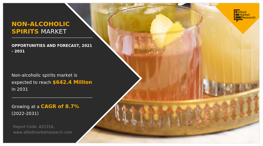 PORTLAND, 5933 NE WIN SIVERS DRIVE, #205, OR 97220, UNITED STATES, June 19, 2023/EINPresswire.com/ -- According to a new report published by Allied Market Research, titled, “Non-alcoholic Spirits Market," The non-alcoholic spirits market size was $281.12 million in 2021, and is estimated to reach $642.4 million by 2031, growing at a CAGR of 8.7% from 2022 to 2031.