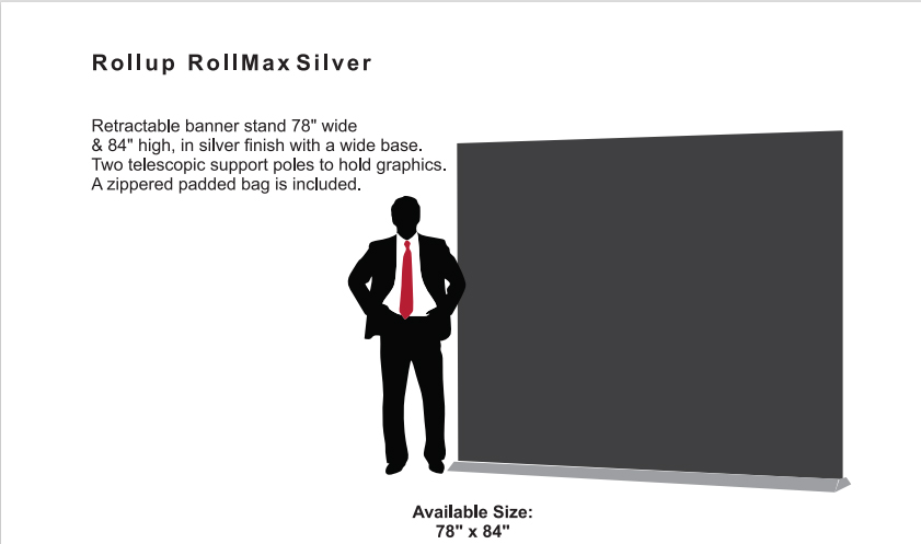 Rollup RollMax Silver. This revolutionary retractable banner stand is designed to empower businesses to convey extensive information making a striking impact